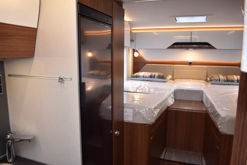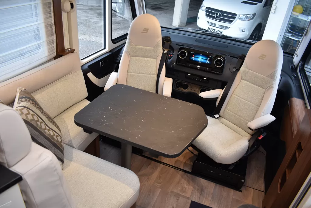 Premium Integrierter mit Doppelboden auf Basis Mercedes-Benz mit Automatik und Abstandstempomat Distronic. HYMER SLC Chassis mit Einzelradaufhängung und Drehstabfederung. Bei 3,5t Gesamtgewicht sind 3 eingetragene Sitzplätze vorhanden. Auflastung auf 4,43t Gesamtgewicht mit 4 eingetragenen Sitzplätzen ohne technische Änderungen sind später möglich. Preis zzgl, Kosten für Fracht und Eintrag Genehemigungsdatenbank. Das Video zeigt ein ähnliches Modell mit teilweise abweichender Sonderausstattung. Irrtum und Änderungen vorbehalten.